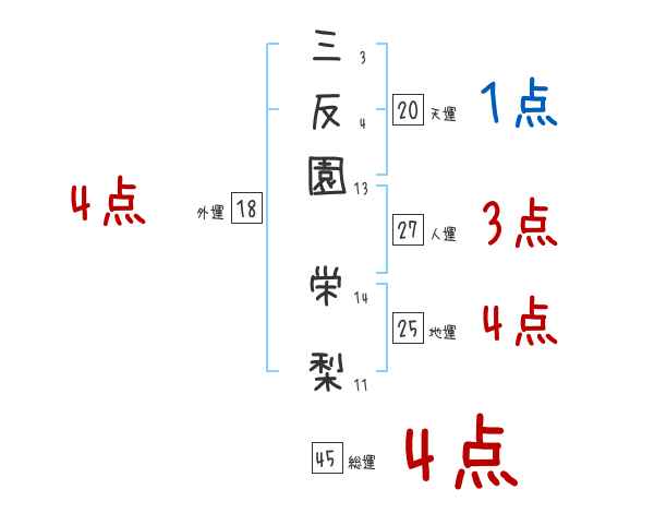 三反園栄梨さんの画数の鑑定結果