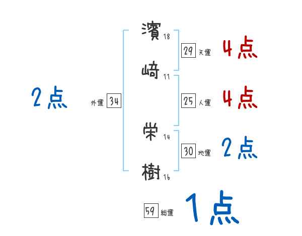 天運![]() | 濱﨑栄樹さんの天運は29画の4つ星!完全主義で才能がある。厳格な心の持ち主。 家系が持つ宿命的な運勢を表します。祖先から受け継いだ苗字ですので自分の力が及びません。家柄を象徴します。 |