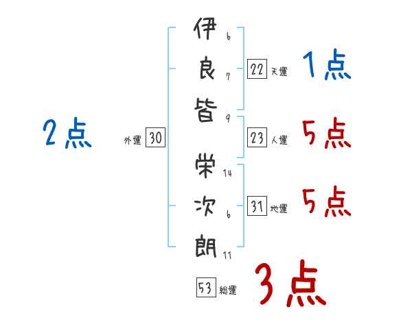 伊良皆栄次朗さんの画数の鑑定結果