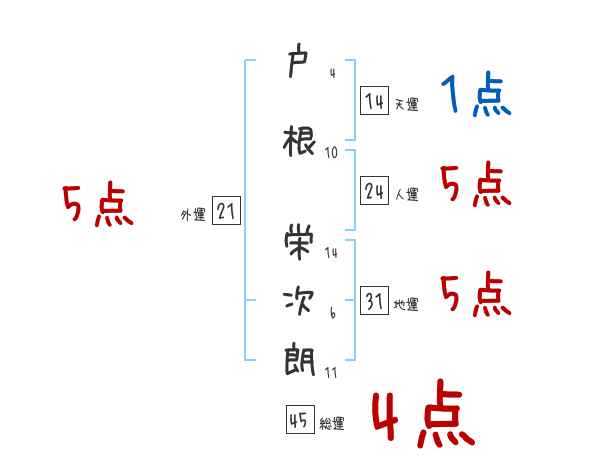 戸根栄次朗さんの画数の鑑定結果