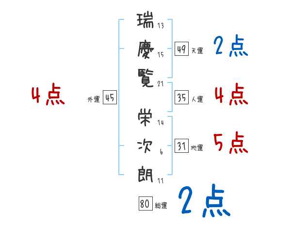 瑞慶覧栄次朗さんの画数の鑑定結果