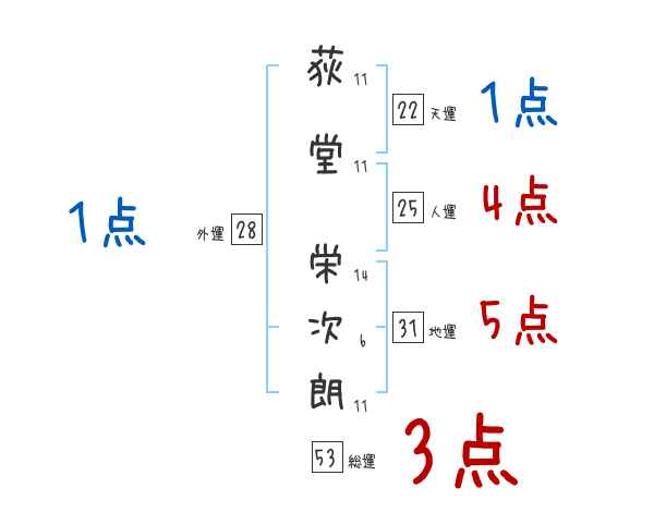 総運![]() | 荻堂栄次朗さんの総運は53画の3つ星!やや見栄っ張りで虚栄心がある。散財に注意。 あなたの人生を表す1番重要な運勢です。生涯を通じて影響する総合運となり、主に50歳以降の晩年期に影響を及ぼします。 |