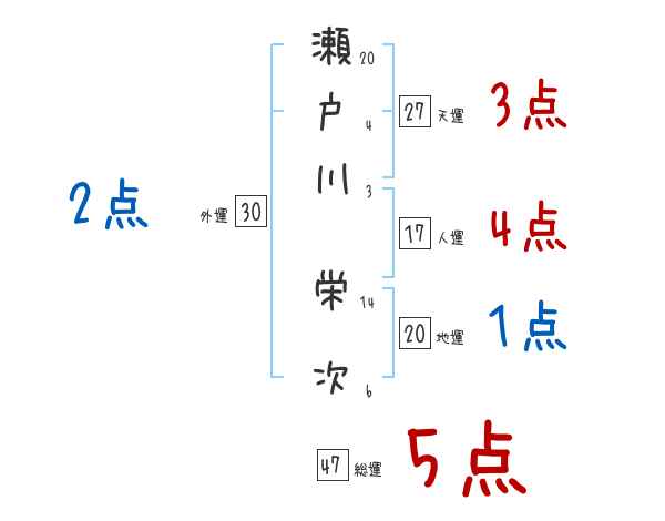 瀬戸川栄次さんの画数の鑑定結果
