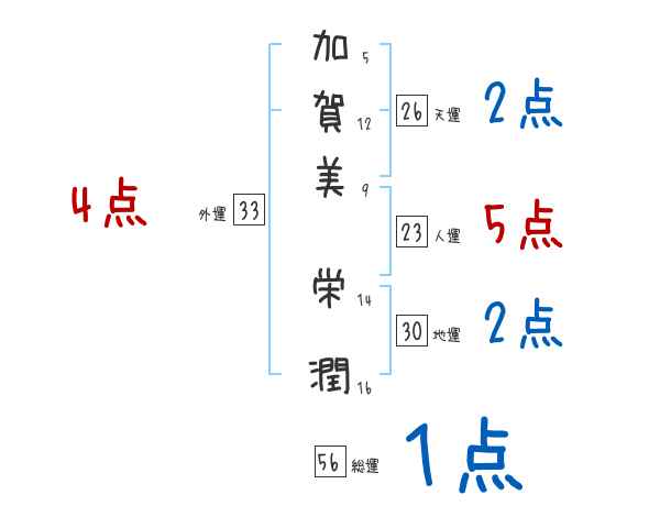 加賀美栄潤さんの画数の鑑定結果