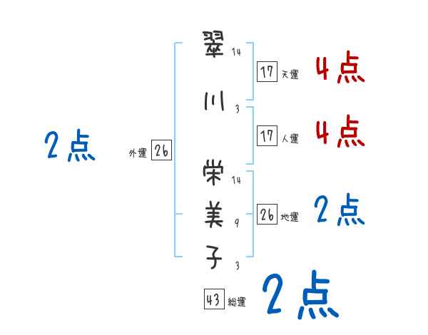 翠川栄美子さんの画数の鑑定結果