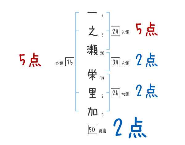 地運![]() | 一之瀬栄里加さんの地運は26画の2つ星!波瀾万丈かも。信頼できる人を大事にしましょう。 個性を表す基礎的な運勢です。性格形成や対人関係、行動力など家庭環境に影響されます。主に誕生してから20歳くらいまでの若年期の運勢を表します。 |