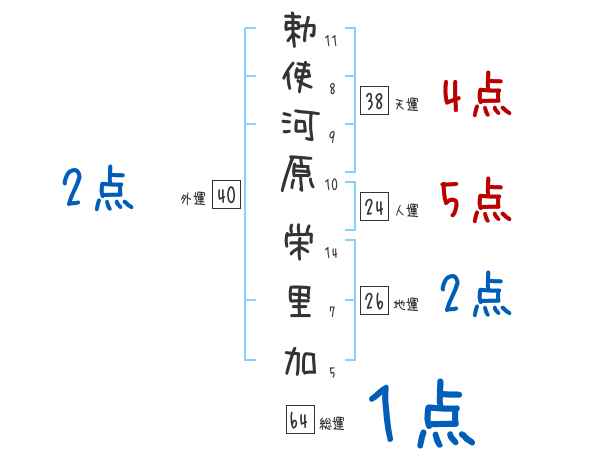 天運![]() | 勅使河原栄里加さんの天運は38画の4つ星!温厚な性格で技術的な才能を発揮する。職人的な仕事に向いている。 家系が持つ宿命的な運勢を表します。祖先から受け継いだ苗字ですので自分の力が及びません。家柄を象徴します。 |