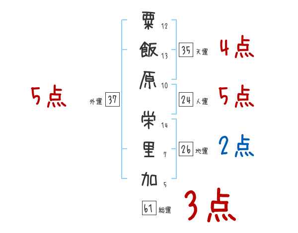外運![]() | 粟飯原栄里加さんの外運は37画の5つ星!努力家で順応性に優れる。現実的な考え方ができ忠実に物事をこなす。 生活面を象徴する運勢です。外部から受ける影響力を表し、結婚運、家庭運や職場、環境への順応性を表します。 |
