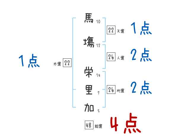 天運![]() | 馬塲栄里加さんの天運は22画の1つ星!努力することが苦手ないっぽう手先が器用。芸術性にも優れる。 家系が持つ宿命的な運勢を表します。祖先から受け継いだ苗字ですので自分の力が及びません。家柄を象徴します。 |