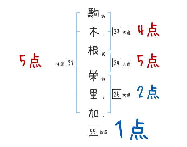 天運![]() | 駒木根栄里加さんの天運は29画の4つ星!完全主義で才能がある。厳格な心の持ち主。 家系が持つ宿命的な運勢を表します。祖先から受け継いだ苗字ですので自分の力が及びません。家柄を象徴します。 |