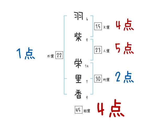 天運![]() | 羽柴栄里香さんの天運は15画の4つ星!人徳があり出世する。順調に物事を進め円満な人生。 家系が持つ宿命的な運勢を表します。祖先から受け継いだ苗字ですので自分の力が及びません。家柄を象徴します。 |