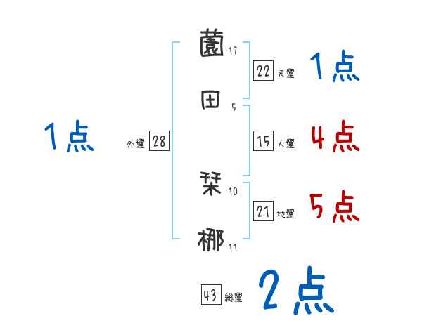 薗田栞梛さんの画数の鑑定結果
