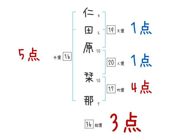 仁田原栞那さんの画数の鑑定結果