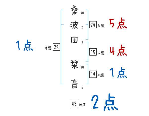 外運![]() | 桑波田栞音さんの外運は28画の1つ星!家庭環境に注意。スポーツで活躍できる能力があるかも。 生活面を象徴する運勢です。外部から受ける影響力を表し、結婚運、家庭運や職場、環境への順応性を表します。 |