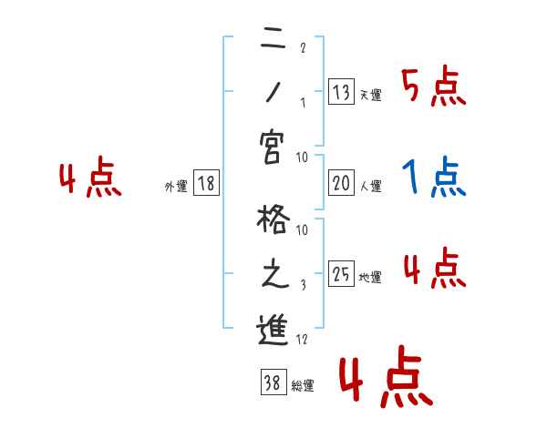 二ノ宮格之進さんの画数の鑑定結果