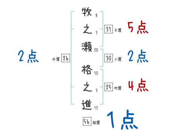 牧之瀬格之進さんの画数の鑑定結果
