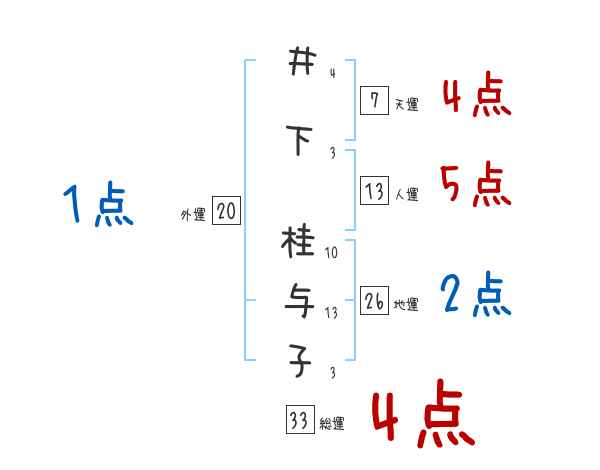 井下桂与子さんの画数の鑑定結果