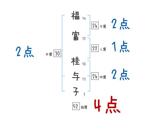 地運![]() | 福富桂与子さんの地運は26画の2つ星!波瀾万丈かも。信頼できる人を大事にしましょう。 個性を表す基礎的な運勢です。性格形成や対人関係、行動力など家庭環境に影響されます。主に誕生してから20歳くらいまでの若年期の運勢を表します。 |