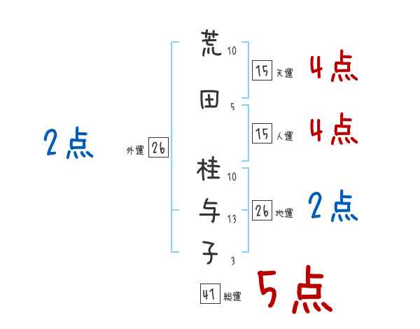 外運![]() | 荒田桂与子さんの外運は26画の2つ星!波瀾万丈かも。信頼できる人を大事にしましょう。 生活面を象徴する運勢です。外部から受ける影響力を表し、結婚運、家庭運や職場、環境への順応性を表します。 |