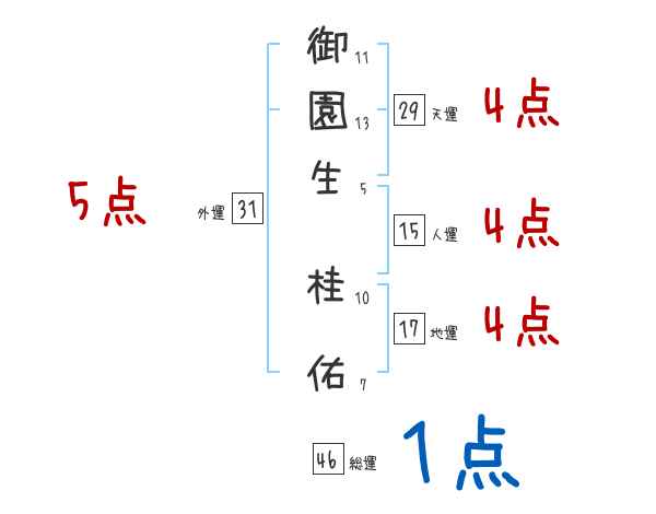 御園生桂佑さんの画数の鑑定結果