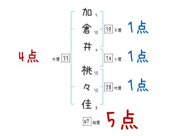 加倉井桃々佳さんの画数の鑑定結果