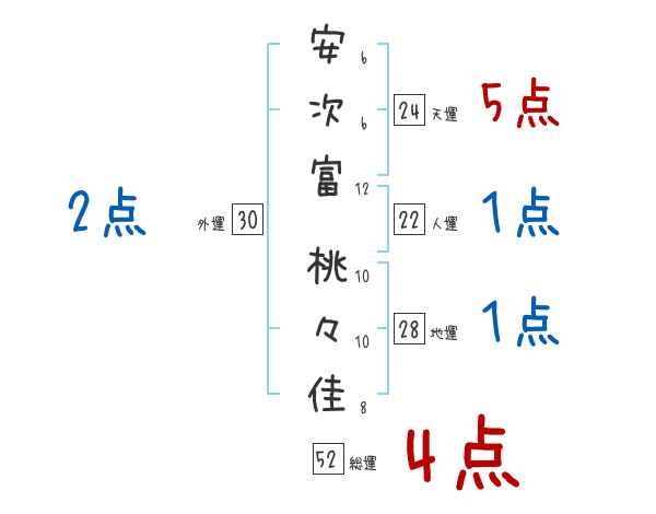 安次富桃々佳さんの画数の鑑定結果