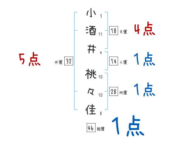 小酒井桃々佳さんの画数の鑑定結果