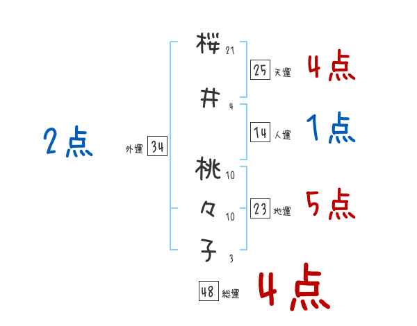 桜井桃々子さんの画数の鑑定結果