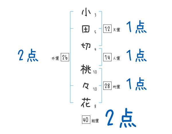 地運![]() | 小田切桃々花さんの地運は28画の1つ星!家庭環境に注意。スポーツで活躍できる能力があるかも。 個性を表す基礎的な運勢です。性格形成や対人関係、行動力など家庭環境に影響されます。主に誕生してから20歳くらいまでの若年期の運勢を表します。 |