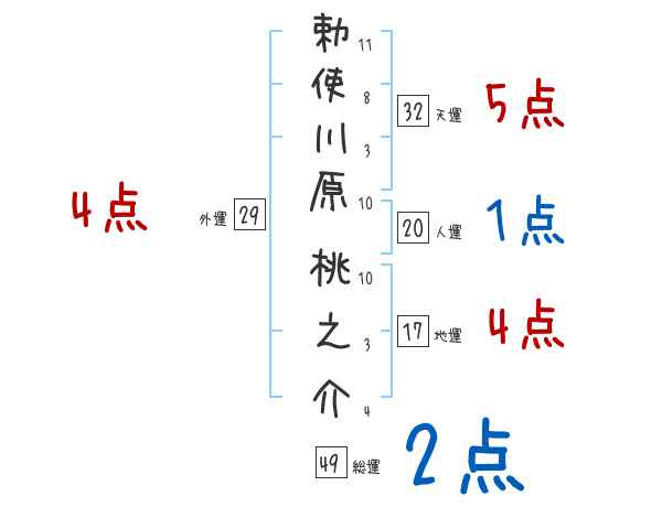天運![]() | 勅使川原桃之介さんの天運は32画の5つ星!柔軟性があり成功する。チャンスが多く金運が良い。 家系が持つ宿命的な運勢を表します。祖先から受け継いだ苗字ですので自分の力が及びません。家柄を象徴します。 |