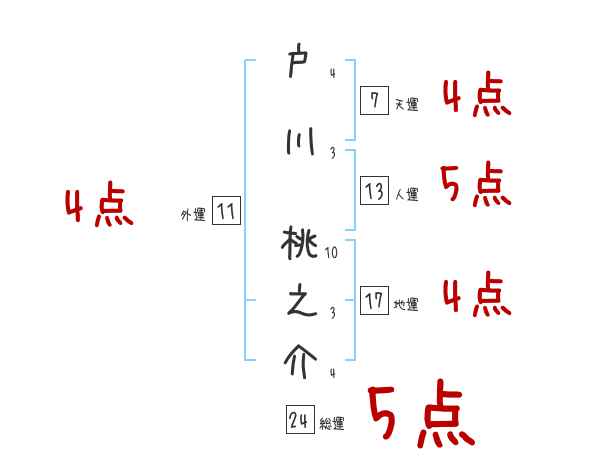 外運![]() | 戸川桃之介さんの外運は11画の4つ星!着実に富や地位を得る幸運な人生。 生活面を象徴する運勢です。外部から受ける影響力を表し、結婚運、家庭運や職場、環境への順応性を表します。 |