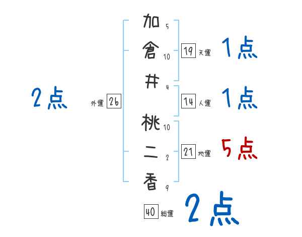 加倉井桃二香さんの画数の鑑定結果