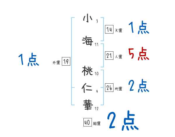 外運![]() | 小海桃仁華さんの外運は19画の1つ星!優れた才能を持ちますが、協調性が足りないことも。周りの人と協力する事を意識しましょう。 生活面を象徴する運勢です。外部から受ける影響力を表し、結婚運、家庭運や職場、環境への順応性を表します。 |