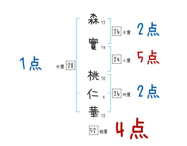 外運![]() | 森實桃仁華さんの外運は28画の1つ星!家庭環境に注意。スポーツで活躍できる能力があるかも。 生活面を象徴する運勢です。外部から受ける影響力を表し、結婚運、家庭運や職場、環境への順応性を表します。 |