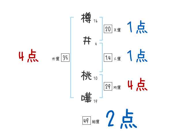 外運![]() | 樽井桃嘩さんの外運は35画の4つ星!温厚な性格で感受性が高い。穏和な性格で人望が厚い。 生活面を象徴する運勢です。外部から受ける影響力を表し、結婚運、家庭運や職場、環境への順応性を表します。 |