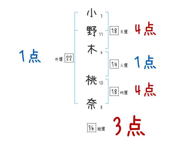 小野木桃奈さんの画数の鑑定結果
