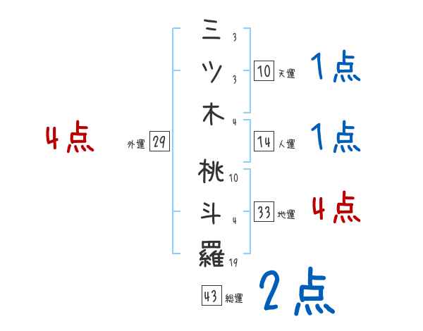 三ツ木桃斗羅さんの外運は29画の4つ星
