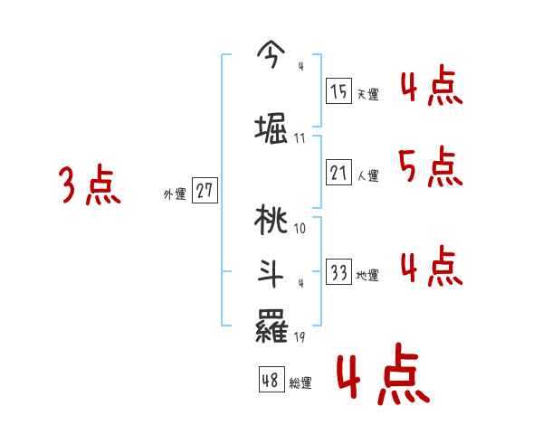 今堀桃斗羅さんの画数の鑑定結果