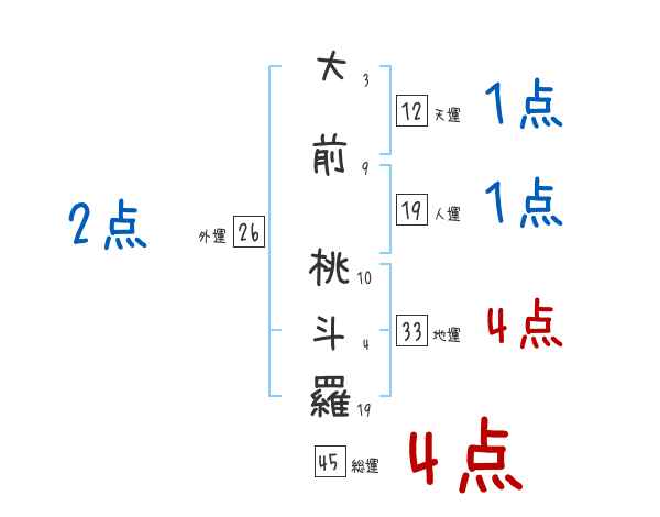 外運![]() | 大前桃斗羅さんの外運は26画の2つ星!波瀾万丈かも。信頼できる人を大事にしましょう。 生活面を象徴する運勢です。外部から受ける影響力を表し、結婚運、家庭運や職場、環境への順応性を表します。 |