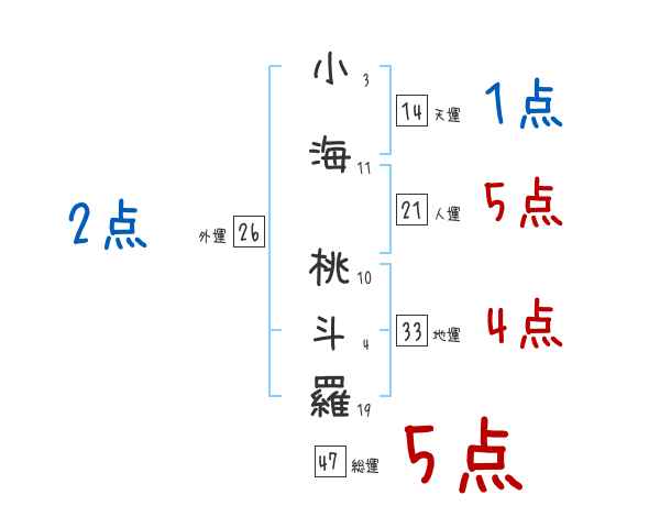 家系が持つ宿命的な運勢を表します。祖先から受け継いだ苗字ですので自分の力が及びません。家柄を象徴します。