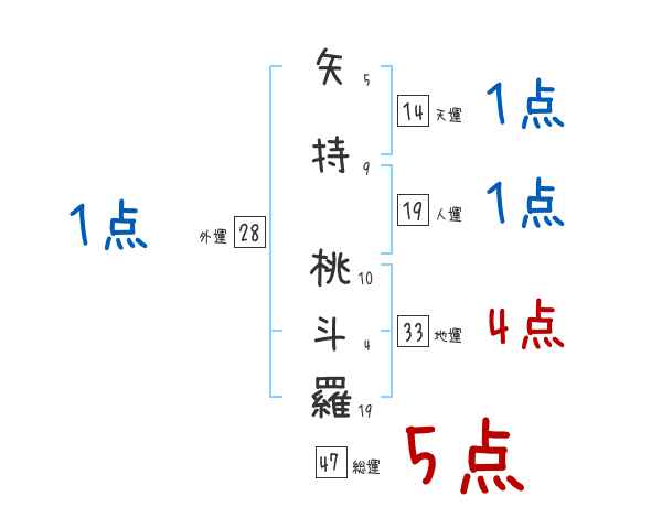 総運![]() | 矢持桃斗羅さんの総運は47画の5つ星!実力が開花し発展する円満な人生。財に恵まれる。 あなたの人生を表す1番重要な運勢です。生涯を通じて影響する総合運となり、主に50歳以降の晩年期に影響を及ぼします。 |