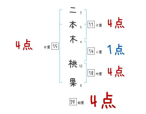 天運![]() | 二本木桃果さんの天運は11画の4つ星!着実に富や地位を得る幸運な人生。 家系が持つ宿命的な運勢を表します。祖先から受け継いだ苗字ですので自分の力が及びません。家柄を象徴します。 |