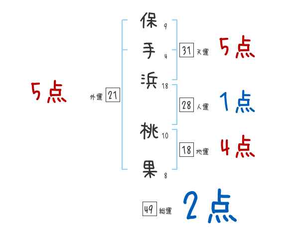 総運![]() | 保手浜桃果さんの総運は49画の2つ星!不安定な性格で明暗がある人生。周りの人には支援されやすい。 あなたの人生を表す1番重要な運勢です。生涯を通じて影響する総合運となり、主に50歳以降の晩年期に影響を及ぼします。 |
