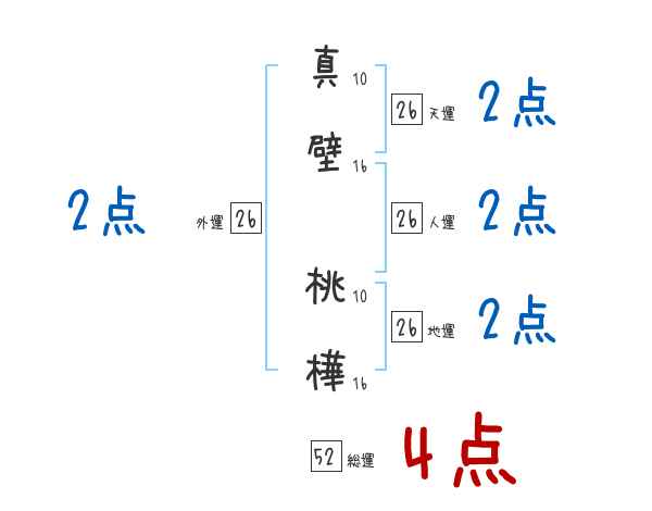 地運![]() | 真壁桃樺さんの地運は26画の2つ星!波瀾万丈かも。信頼できる人を大事にしましょう。 個性を表す基礎的な運勢です。性格形成や対人関係、行動力など家庭環境に影響されます。主に誕生してから20歳くらいまでの若年期の運勢を表します。 |