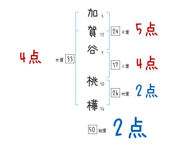 加賀谷桃樺さんの画数の鑑定結果