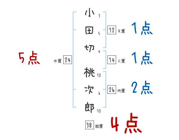 外運![]() | 小田切桃次郎さんの外運は24画の5つ星!家庭運が良く順調な人生。金運にも恵まれる。 生活面を象徴する運勢です。外部から受ける影響力を表し、結婚運、家庭運や職場、環境への順応性を表します。 |