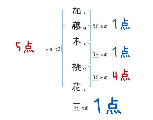 外運![]() | 加藤木桃花さんの外運は32画の5つ星!柔軟性があり成功する。チャンスが多く金運が良い。 生活面を象徴する運勢です。外部から受ける影響力を表し、結婚運、家庭運や職場、環境への順応性を表します。 |