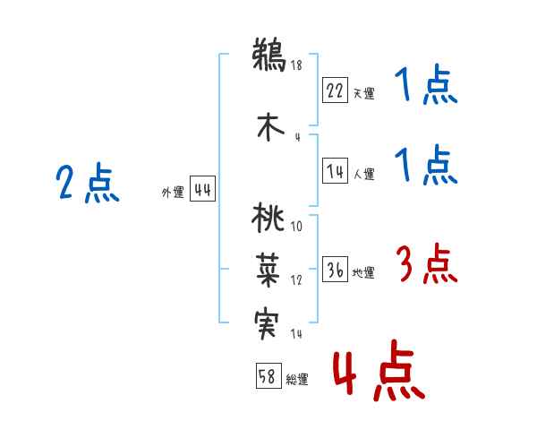 総運![]() | 鵜木桃菜実さんの総運は58画の4つ星!安定した生活。大器晩成タイプ。 あなたの人生を表す1番重要な運勢です。生涯を通じて影響する総合運となり、主に50歳以降の晩年期に影響を及ぼします。 |