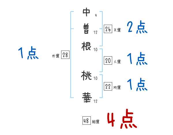 中曽根桃華さんの画数の鑑定結果