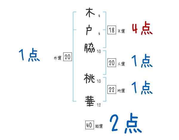 天運![]() | 木戸脇桃華さんの天運は18画の4つ星!情熱的で剛気。忍耐力があり信頼される。 家系が持つ宿命的な運勢を表します。祖先から受け継いだ苗字ですので自分の力が及びません。家柄を象徴します。 |